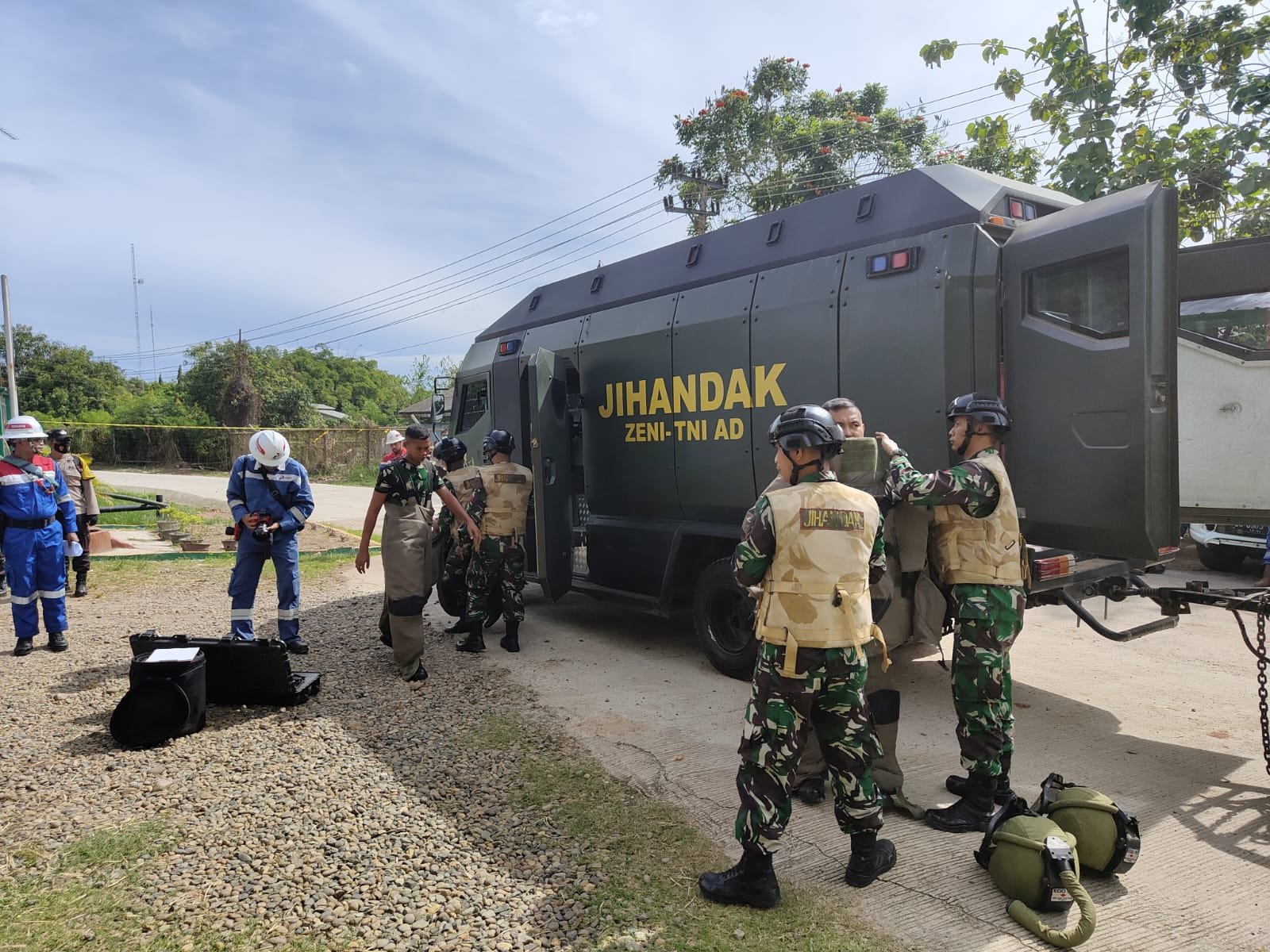 Pantauan awak media, pada penanganan potensi ancaman bom. PHRZ Field Prabumulih juga melibatkan Yonzipur 2/SG menurun satu unit mobil Jihandak dalam evakuasi bom pada simulasi potensi ancaman bom di lingkungan PHRZ Field Prabumulih.