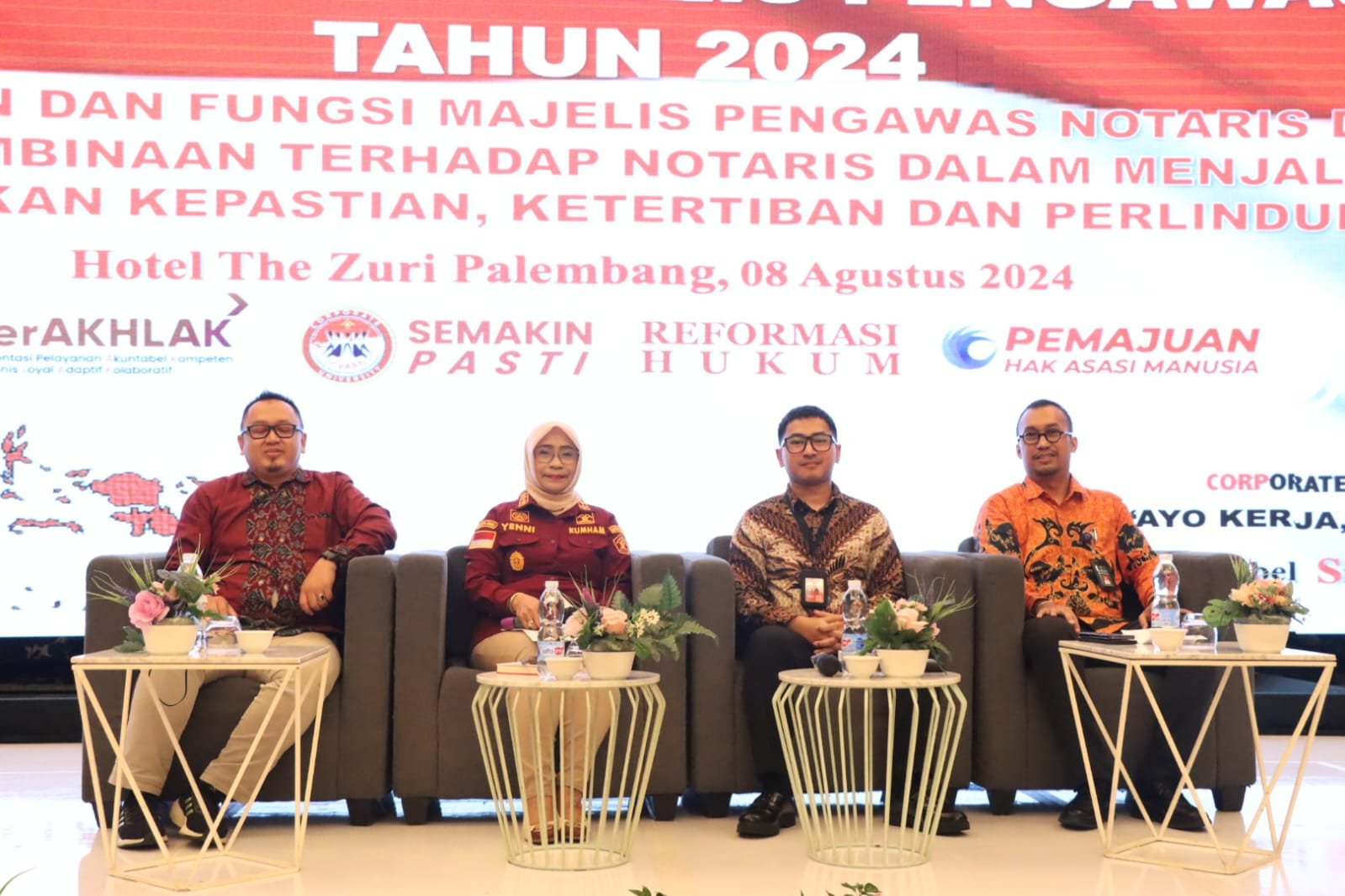 MATTANEWS.CO, PALEMBANG – Kantor Wilayah Kementerian Hukum dan HAM Sumatera Selatan menggelar Rapat Koordinasi Majelis Pengawas Notaris Tahun 2024, Kamis (8/8). Kegiatan yang dilaksanakan di Ballroom Hotel The Zuri Palembang mengusung tema Penguatan Peran dan Fungsi Majelis Pengawas Notaris dalam Rangka Pengawasan dan Pembinaan Terhadap Notaris.