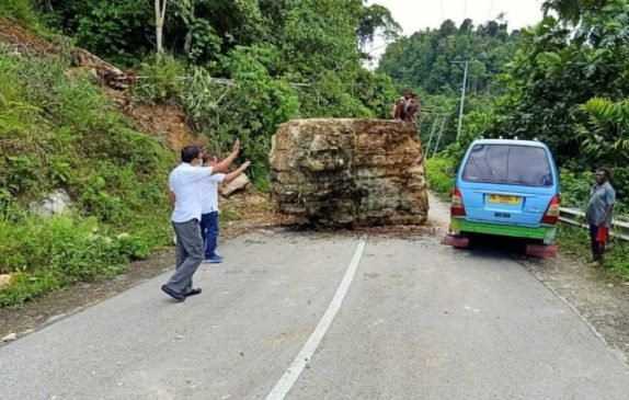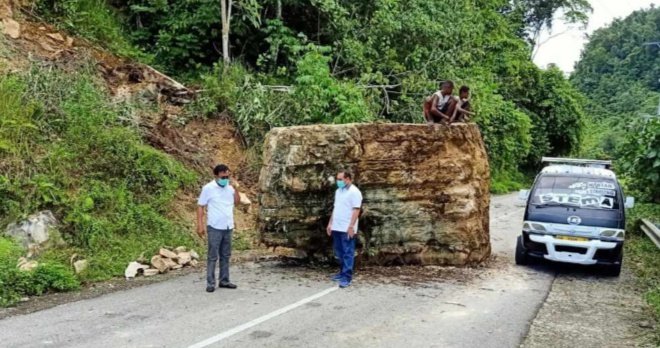 “Insya Allah, secepatnya diturunkan Ekskavator, untuk memindahkan batu tersebut dari badan jalan,” ucap Kadis Samaun Dahlan.