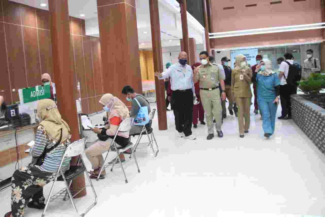 MATTANEWS.CO, JAKARTA– Kondisi rumah sakit di Provinsi DKI Jakarta tengah memasuki masa-masa krusial di mana harus berhadapan dengan lonjakan kasus aktif Covid-19 yang signifikan. Guna memastikan seluruh rumah sakit optimal dalam memberikan pelayanan kesehatan, Gubernur Provinsi DKI Jakarta, Anies Baswedan, bersama Kepala Dinas Kesehatan Provinsi DKI Jakarta, Widyastuti, beserta jajaran meninjau langsung pelayanan kesehatan di Rumah Sakit Umum Daerah (RSUD) Koja, Jakarta Utara, pada Selasa (29/6/2021).