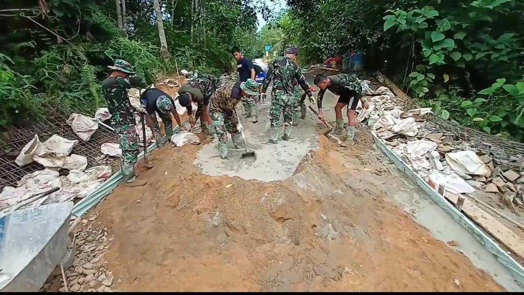 Untuk pembangunan jalan rabat beton sepanjang 280 meter dengan lebar 4 meter juga, sudah selesai dikerjakan oleh personel Satgas TMMD ke-111 bersama masyarakat.
