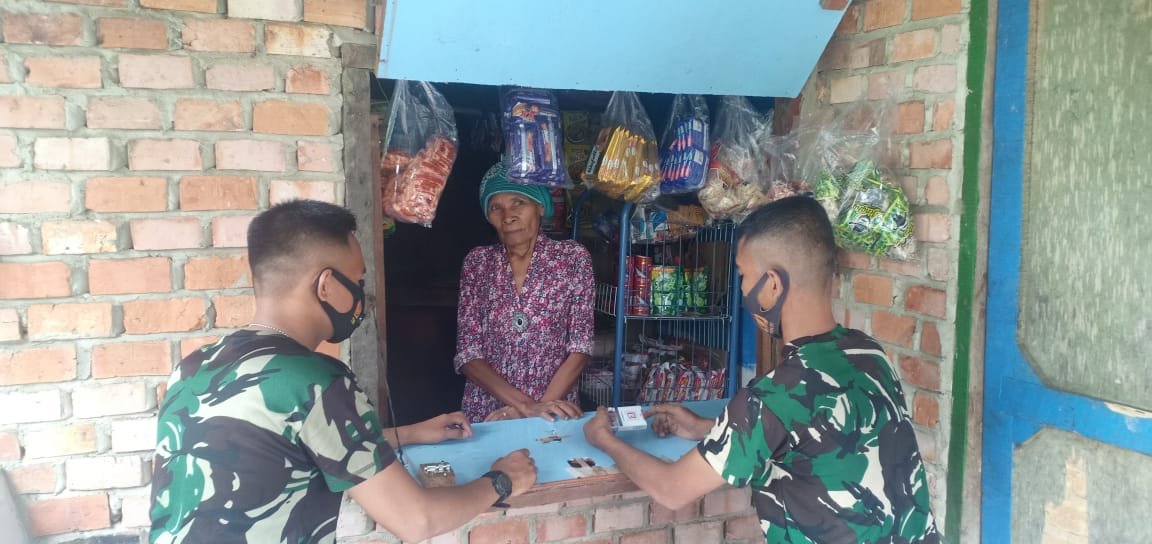 Nampak sejumlah anggota TNI dan Polri yang sedang beristirahat mampir ke warung untuk sekedar membeli makanan, minuman atau Rokok.