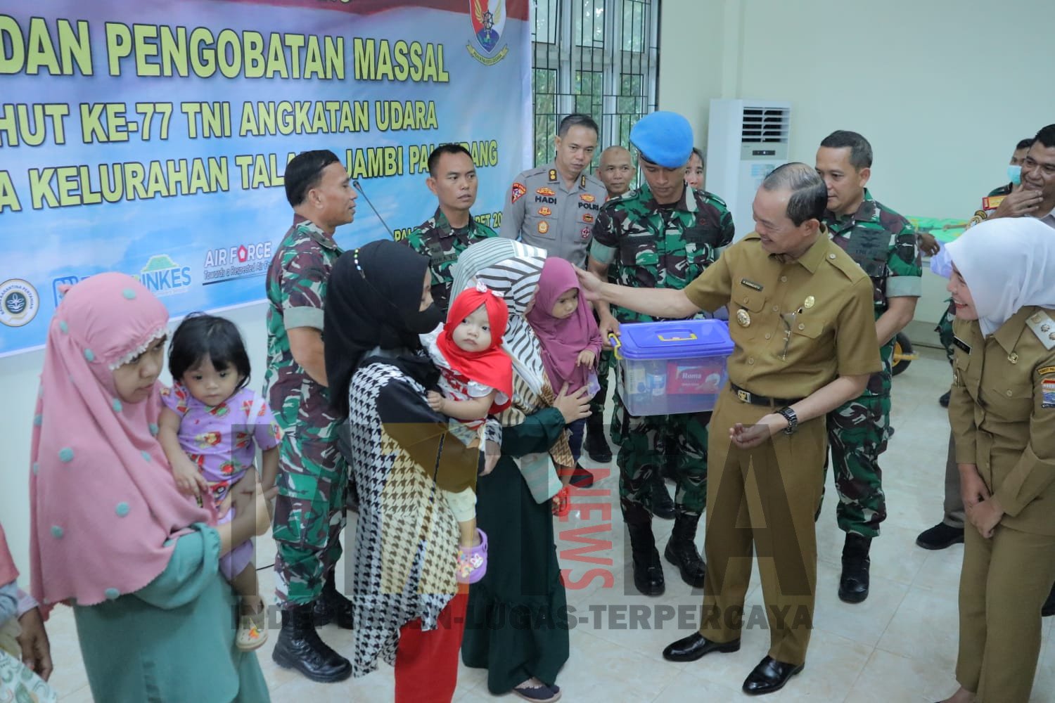 MATTANEWS.CO, PALEMBANG – Wali Kota Palembang H.Harnojoyo, Selasa (7/3/2023) bersama Wakil Wali Kota Palembang Fittisnti Agustinda, menghadiri langsung bakti sosial dan pengobatan massal dalam rangkaian peringatan HUT TNI AU ke 77 yang diadakan Lanud Sri Mulyono Herlambang  di Kampung Dirgantara Kelurahan Talang Jambe Kecamatan Sukarame Palembang.