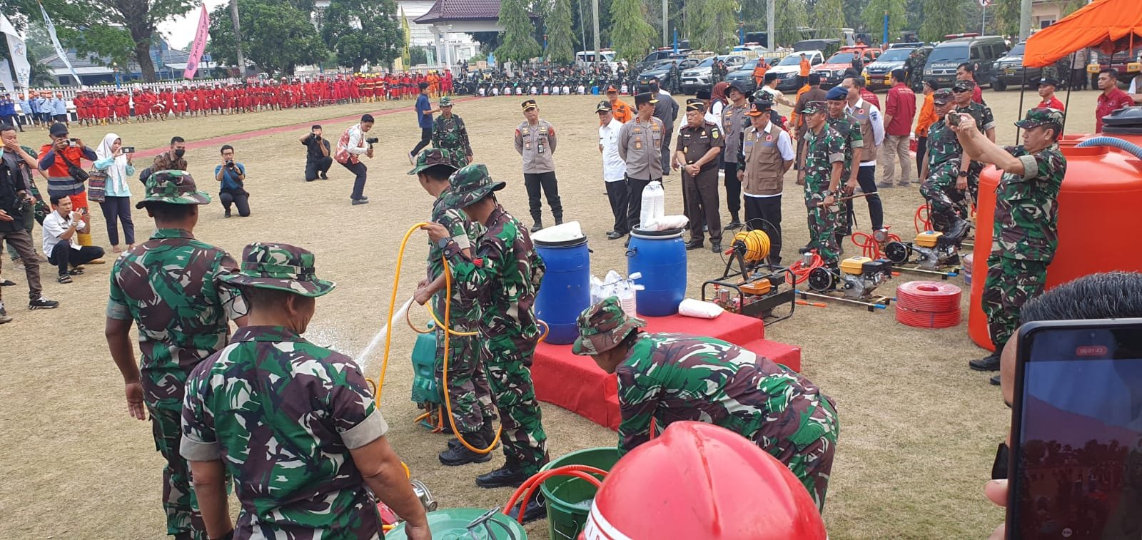 MATTANEWS.CO, OKI – Penanganan kebakaran hutan dan lahan (Karhutla) di Sumatera Selatan, khususnya di Kabupaten Ogan Komering Ilir (OKI) diperkuat dengan menugaskan 350 pasukan TNI dari Kodam II Sriwijaya. Tambahan personel itu digelar melalui Apel Pengerahan Pasukan Tambahan Penanganan Karhutla di Kantor Bupati OKI, Rabu (11/10).