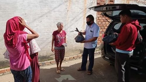 Bantuan paket sembako yang berisikan beras 10 Kg, telur, gula, dan susu serta sayur diberikan sistem ‘door to door’