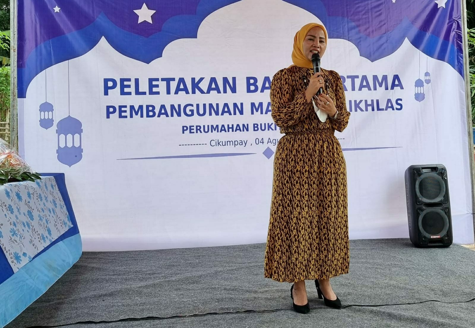 MATTANEWS.CO, PURWAKARTA – Meski ditengah himpitan ekonomi yang kian tak menentu, H Rusmiati buktikan eksistensinya sebagai Tokoh Desa Cikumpay Kecamatan Campaka Purwakarta. Rabu (04/08/2021), H Rusmiati memulai peletakan batu pertama pada pembangunan Masjid Al Ikhlas, yang berlokasi di Perumahan Resident Rw 05. “Alhamdulillah, hari ini bersama warga kami memulai pembangunan Masjid Al Ikhlas, terimakasih pada tokoh setempat khususnya ibu Hj.Rusmiati yang berkenan meletakan batu pertama pembangunan masjid ini,” ungkap Nurhasanah PJS . Kades Cikumpay.