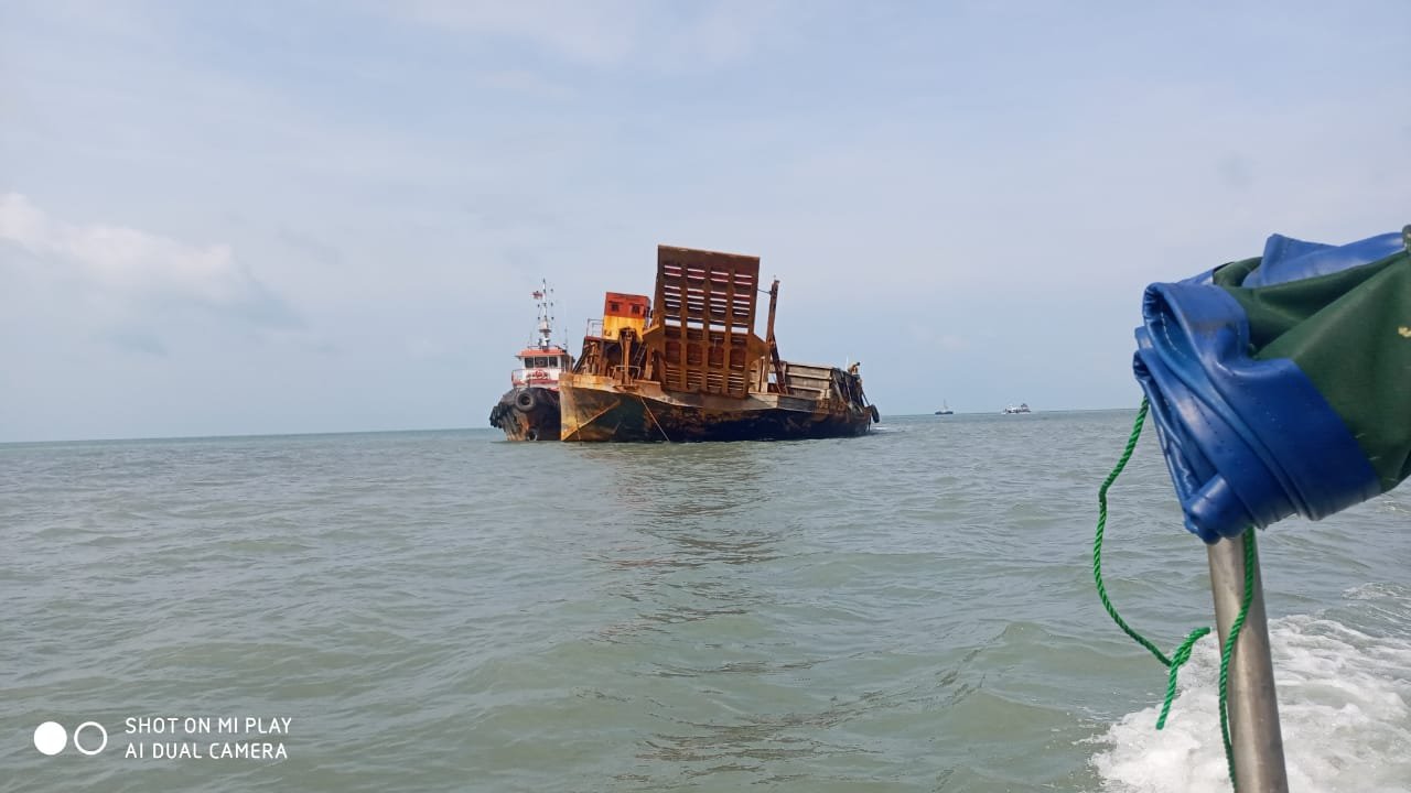 “Mereka menyelamatkan tongkang dengan membuang muatan, tapi tidak semua. Dari 1500 kubik pasir, masih ada sekita 400 kubik lagi kalau gak salah. Tapi ini juga tanpa seizin kita,” terang Agus.