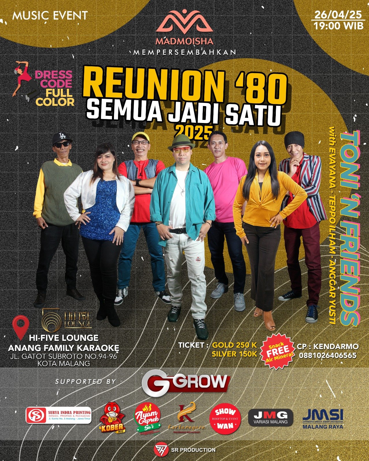 MATTANEWS.CO, MALANG – Toni and Friends akan mengawal perhelatan musik bertema hits dari era ’80an, khususnya pop, Fusion dan sedikit jazz yang akan digebyar hari Sabtu, tanggal 26 April 2025, di Hi Five Anang Family karaoke, jalan Gatot Soebroto, Kota Malang .