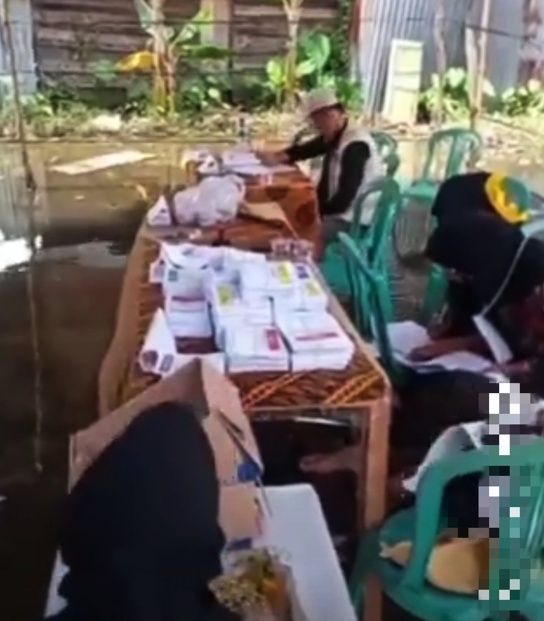 MATTANEWS.CO, PALEMBANG – Tingginya air pasang sempat menggenangi TPS 32, Jalan HM Riacudu Lorong Garuda I RT 38 Kelurahan 7 Ulu, Kecamatan SU I Palembang. Kendati demikian, tidak mempengaruhi suasana pencoblosan dan penghitungan suara dalam Pemilu 2024, Rabu (14/2/2024).