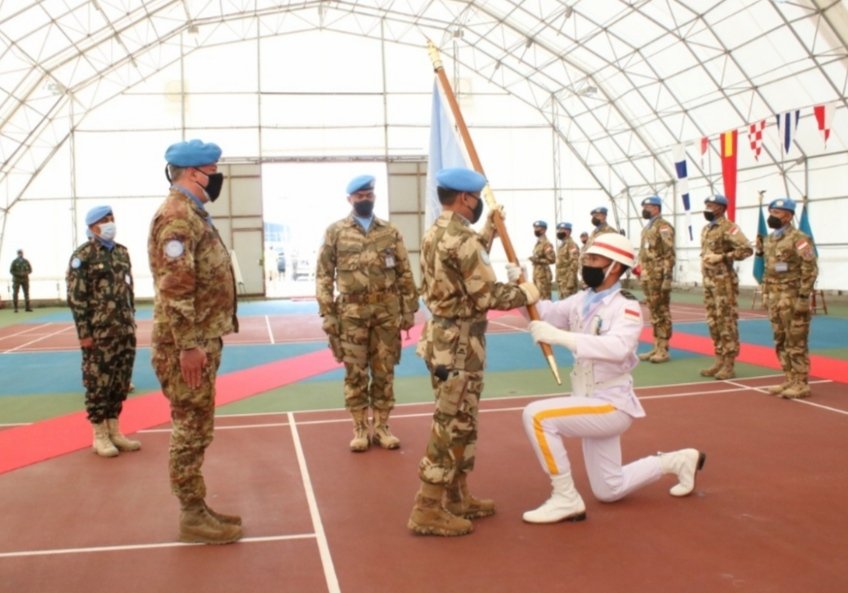 Upacara serah terima tersebut dipimpin oleh Inspektur Upacara Head Of Mission / Force Commander (HOM/FC) UNIFIL Major General Stefano Del Coll, bertempat di Rubb Hall UNIFIL HQ Naqoura Lebanon, Rabu lalu (27/1/2021).