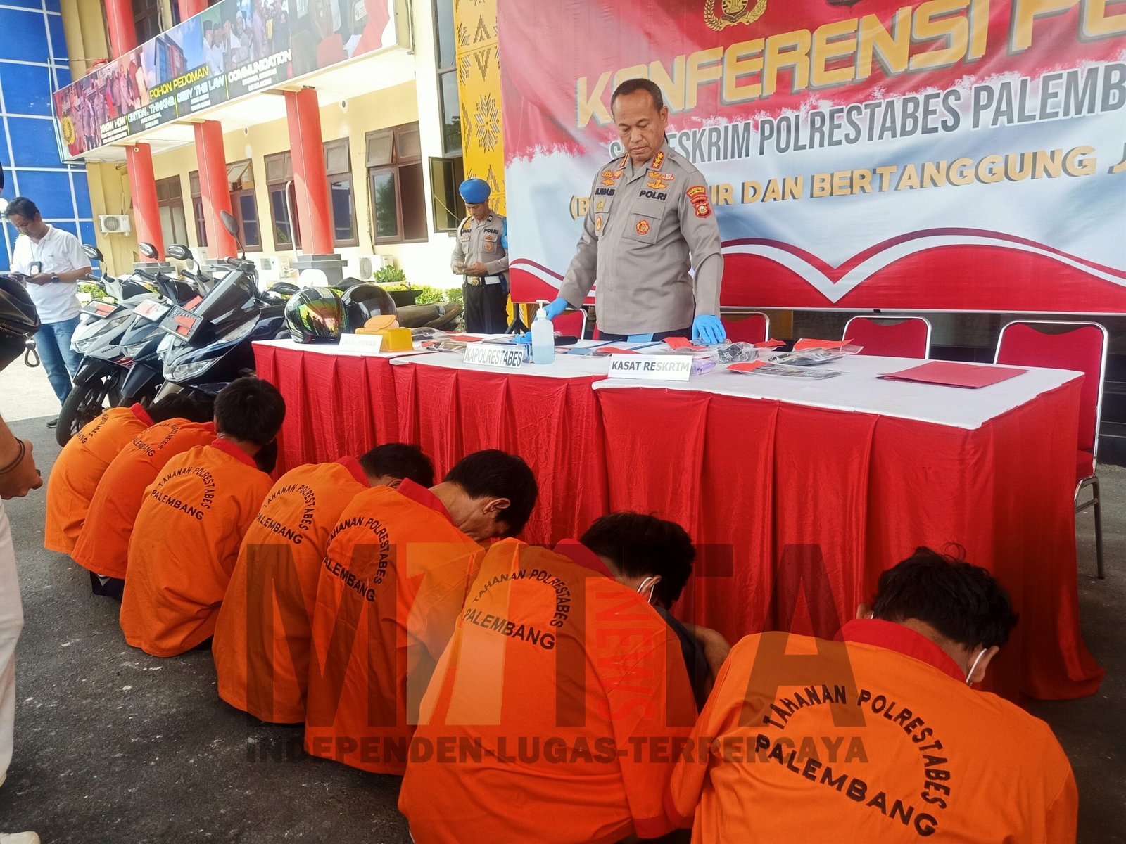 “Mereka ini komplotan curanmor di Kota Palembang. Lokasi sasaran, Perumahan, minimarket dan kost-kostan. Tercatat, dari aksi tujuh tersangka ini, ada 26 TKP (Tempat Kejadian Perkara),” ungkap Kapolrestabes Palembang, Kombes Pol Mokhammad Ngajib didampingi Kasat Reskrim, AKBP Haris Dinzah, saat press release.