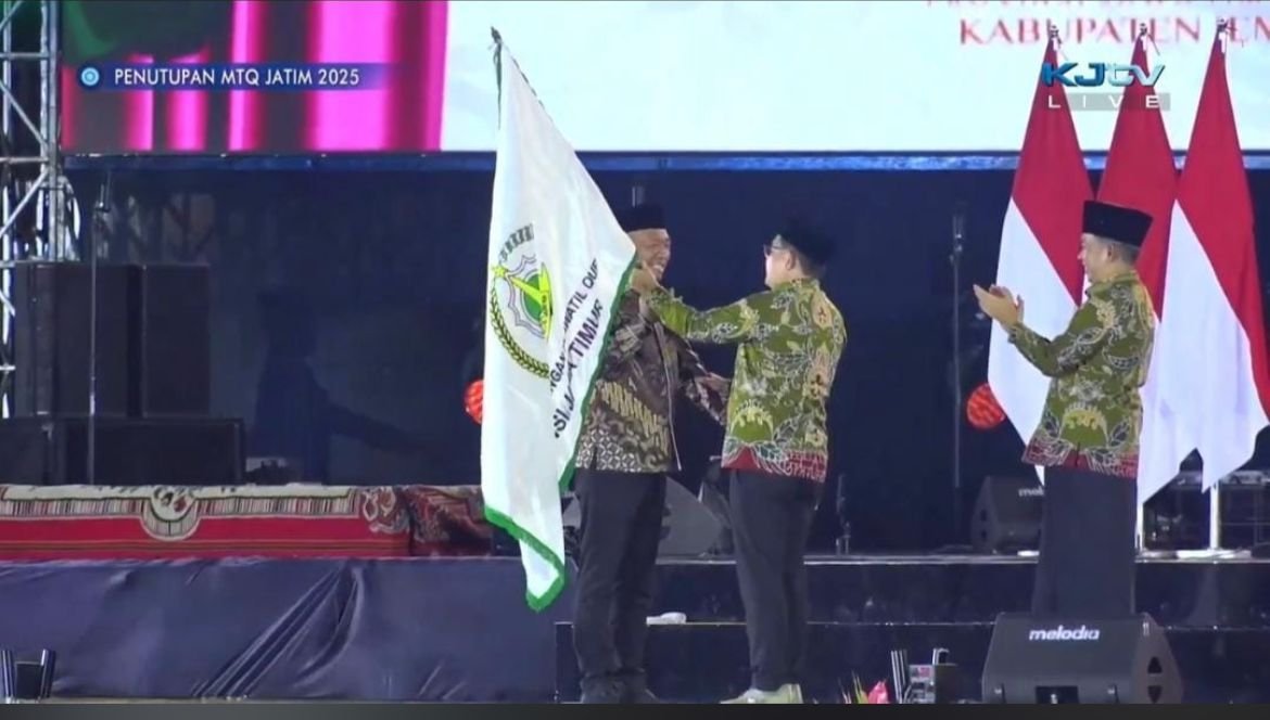 MATTANEWS.CO,TULUNGAGUNG- Kabupaten Tulungagung resmi ditetapkan sebagai tuan rumah Musabaqah Tilawatil Qur’an (MTQ) XXXII Tingkat Provinsi Jawa Timur tahun 2027. Kepastian ini diumumkan pada penutupan MTQ XXXI di Jember Sport Garden, Kabupaten Jember, Jumat (19/9/2025) malam, melalui prosesi serah terima bendera MTQ dari Bupati Jember, Muhamad Fawaid, kepada Bupati Tulungagung, H. Gatut Sunu Wibowo, S.E., M.E.
