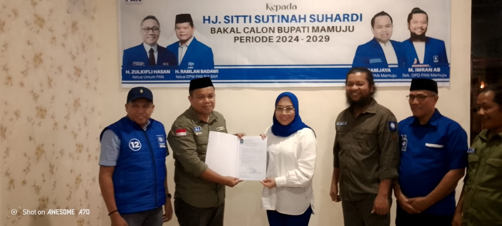 “Iya, hari ini rekomendasi terbaru PAN untuk Pilkada Mamuju 2024 telah diserahkan kepada kita oleh DPD PAN Mamuju.” Ungkap Sutinah.