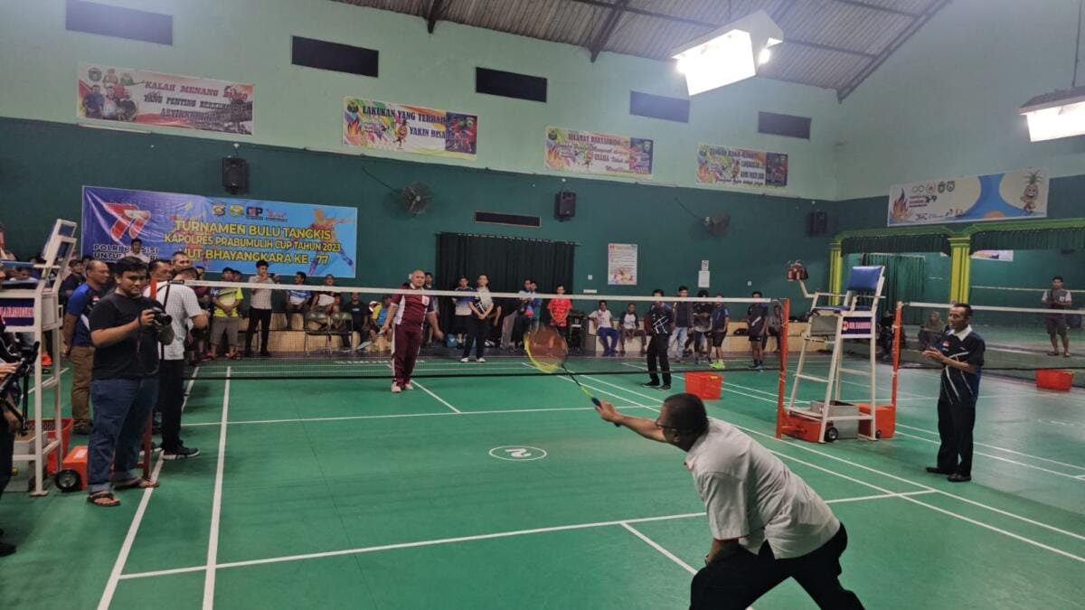 MATTANEWS.CO, PRABUMULIH – Kapolres Prabumulih, AKBP Witdiardi SIk MH didampingi Wakapolres, Kompol Hendri SH langsung membuka turnamen bulutangkis Kapolres Prabumulih Cup 2023 di GOR Harmonis dalam rangka memeriahkan HUT Bhayangkara ke 77, Rabu, (7/6/2023) malam.