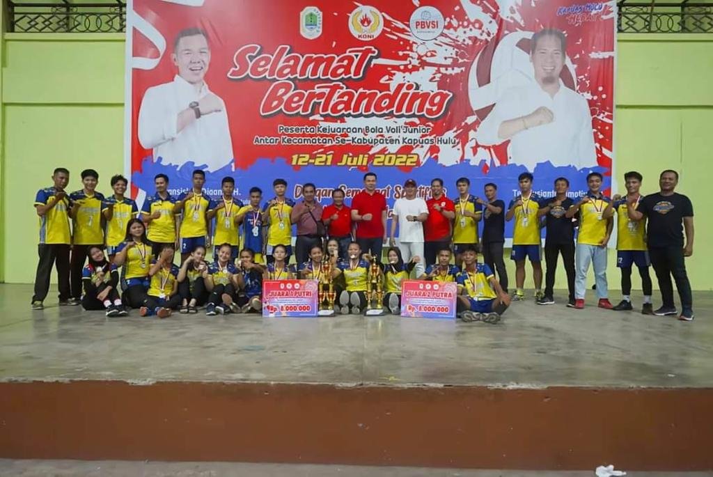 Bupati Kapuas Hulu Fransiskus Diaan mengucapkan selamat kepada Atlit Putra Kecamatan Semitau dan Atlit Putri Kecamatan Putussibau Selatan yang telah menjuarai Kejuaraan Bola Voli Junior antar Kecamatan se – Kabupaten Kapuas Hulu.