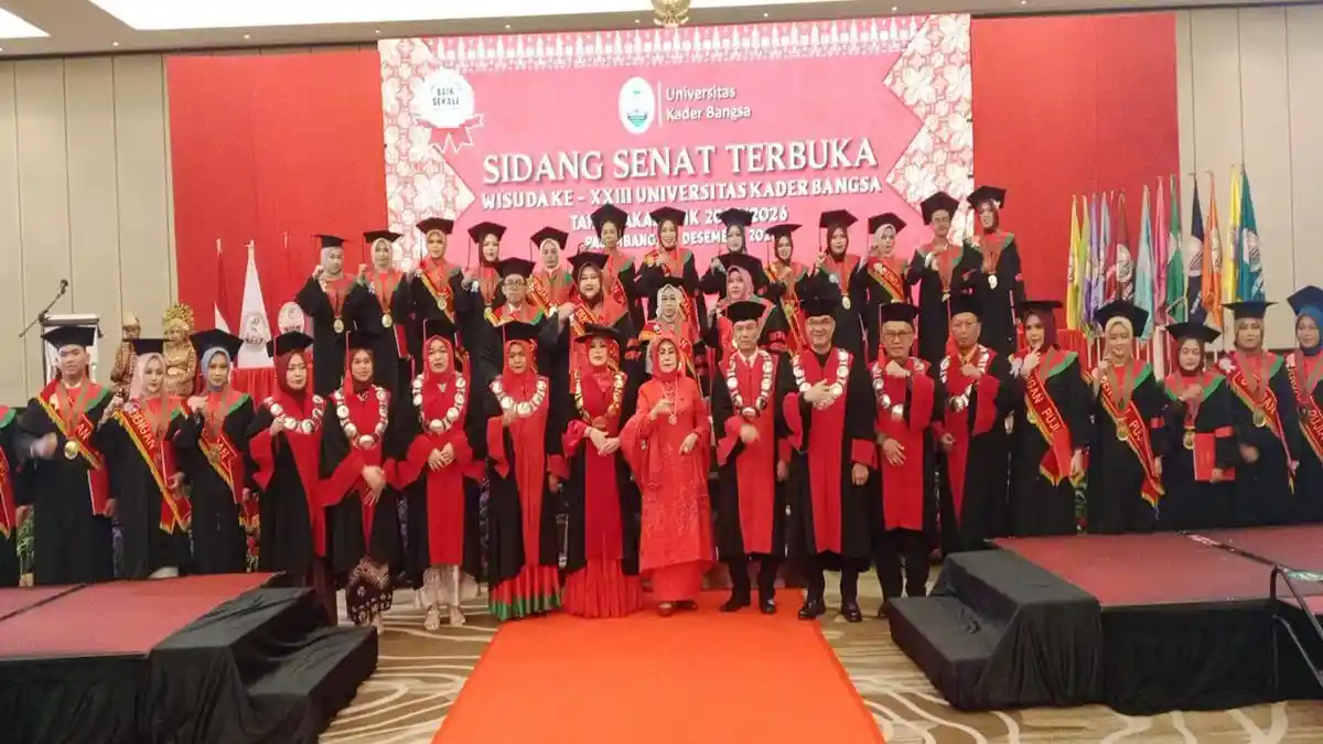MATTANEWS.CO, PALEMBANG – Universitas Kader Bangsa (UKB) Palembang kembali menggelar wisuda ke-XXIII yang digelar di Ballroom Hotel Wyndham Opi Mall, Jalan Opi Raya, Kecamatan Rambutan, Kabupaten Banyuasin, Sumatera Selatan, Kamis (11/12/2025).