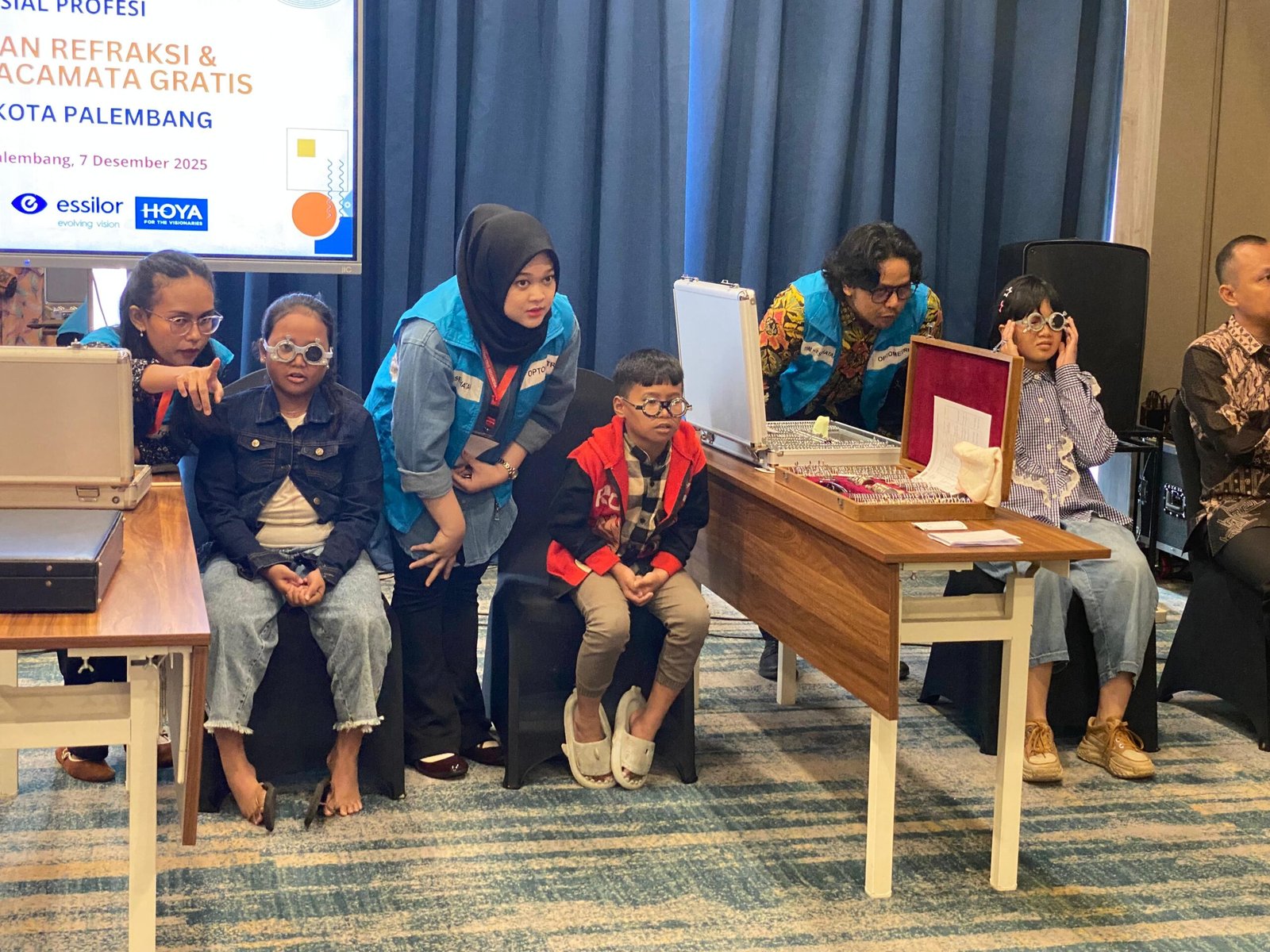 MATTANEWS.CO, PALEMBANG – Universitas Kader Bangsa (UKB) bersama Ikatan Refraksionis Optisien Indonesia (IROPin) menggelar kegiatan bakti sosial berupa pemeriksaan refraksi dan pemberian kacamata gratis bagi siswa-siswi sekolah dasar di Kota Palembang, Miinggu (07/12/2025)