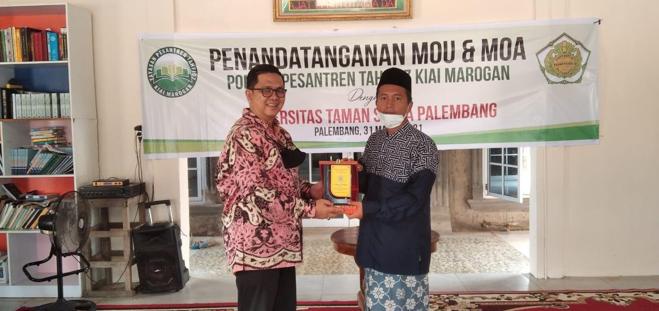 MATTANEWS.CO, PALEMBANG – Universitas Taman Siswa Palembang menggandeng Pondok Pesantren dalam mengelola air bersih dan air minum. Kerjasama ini ditandai dengan penandatangan yang dilakukan di Ponpes Tahfidz Kiai Marogan di Talang Jambe, Sukarami, Palembang.