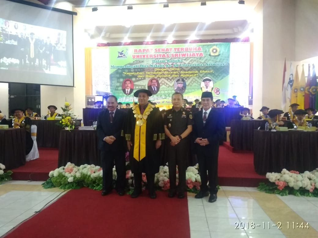 PALEMBANG, Mattanews.co – Rapat Senat Terbuka Universitas Sriwijaya dalam rangka Memperingati Dies Natalis ke 58 Unsri dengan tema Kepatuhan Terhadap Aturan, Akademik Efektif, dan Riset Inovatif dan Aplikatif digelar di Graha Unsri, Jum’at (2/11).