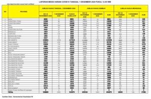 Data Pasien Corona (Covid-19) ini tercatat sejak Senin, 30 November 2020 pukul 12.00 WIB hingga hari ini, Selasa, 1 Desember 2020 pukul 12.00 WIB.