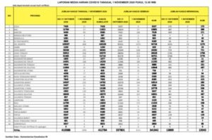 Data Pasien Corona (Covid-19) ini tercatat sejak Sabtu, 31 Oktober 2020 pukul 12.00 WIB hingga hari ini, Minggu, 1 November 2020 pukul 12.00 WIB.