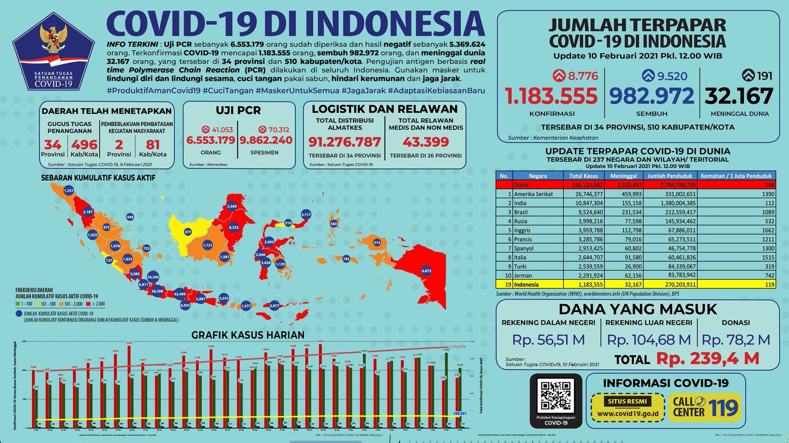 Data Pasien Corona (Covid-19) ini tercatat sejak Selasa, 9 Februari 2021 pukul 12.00 WIB hingga hari ini, Rabu, 10 Februari 2021 pukul 12.00 WIB.