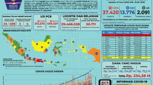 Update 13 Juni 2020 Korban Covid-19 di DKI Jakarta, Total Positif 8.748 Kasus