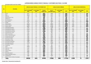 Data Pasien Corona (Covid-19) ini tercatat sejak Kamis, 15 Oktober 2020 pukul 12.00 WIB hingga hari ini, Jumat, 16 Oktober 2020 pukul 12.00 WIB.