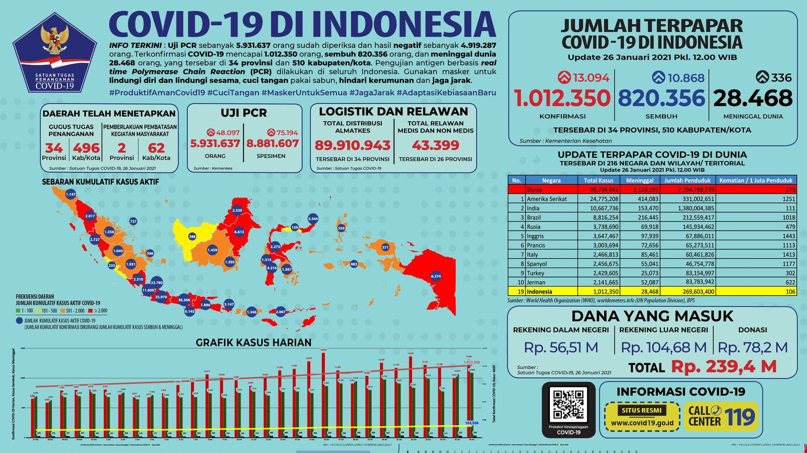 Update 26 Januari 2021 Korban Covid-19 di Indonesia: 1.012.350 Positif, 820.356 Sembuh, 28.468 Meninggal