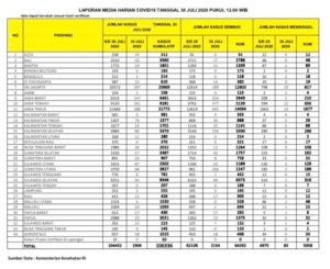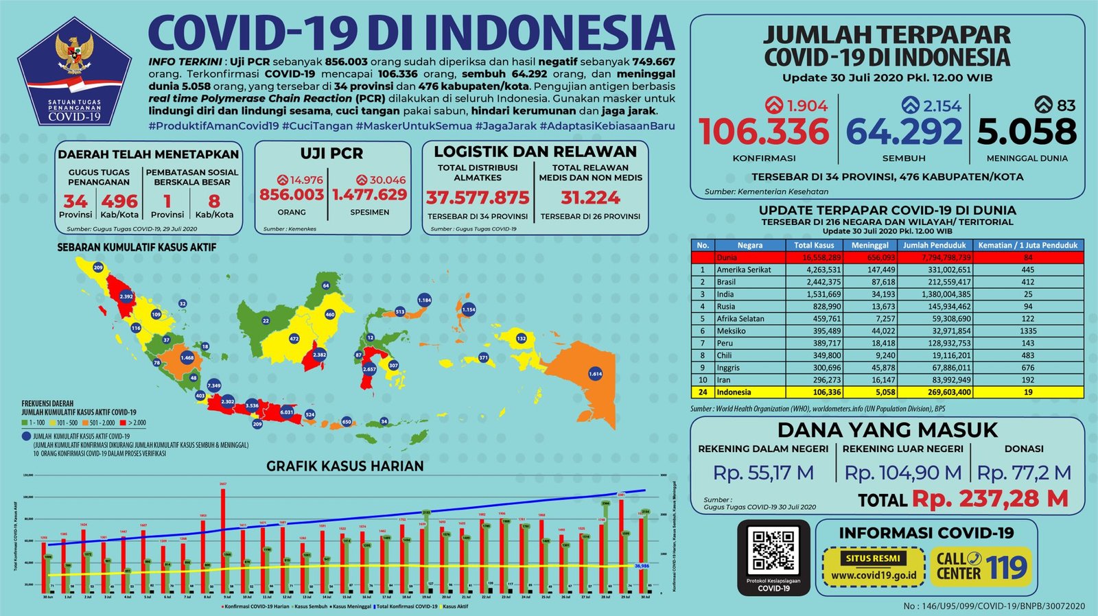 Update 30 Juli 2020 Korban Covid-19 di Indonesia: 106.336 Positif, 64.292 Sembuh, 5.058 Meninggal