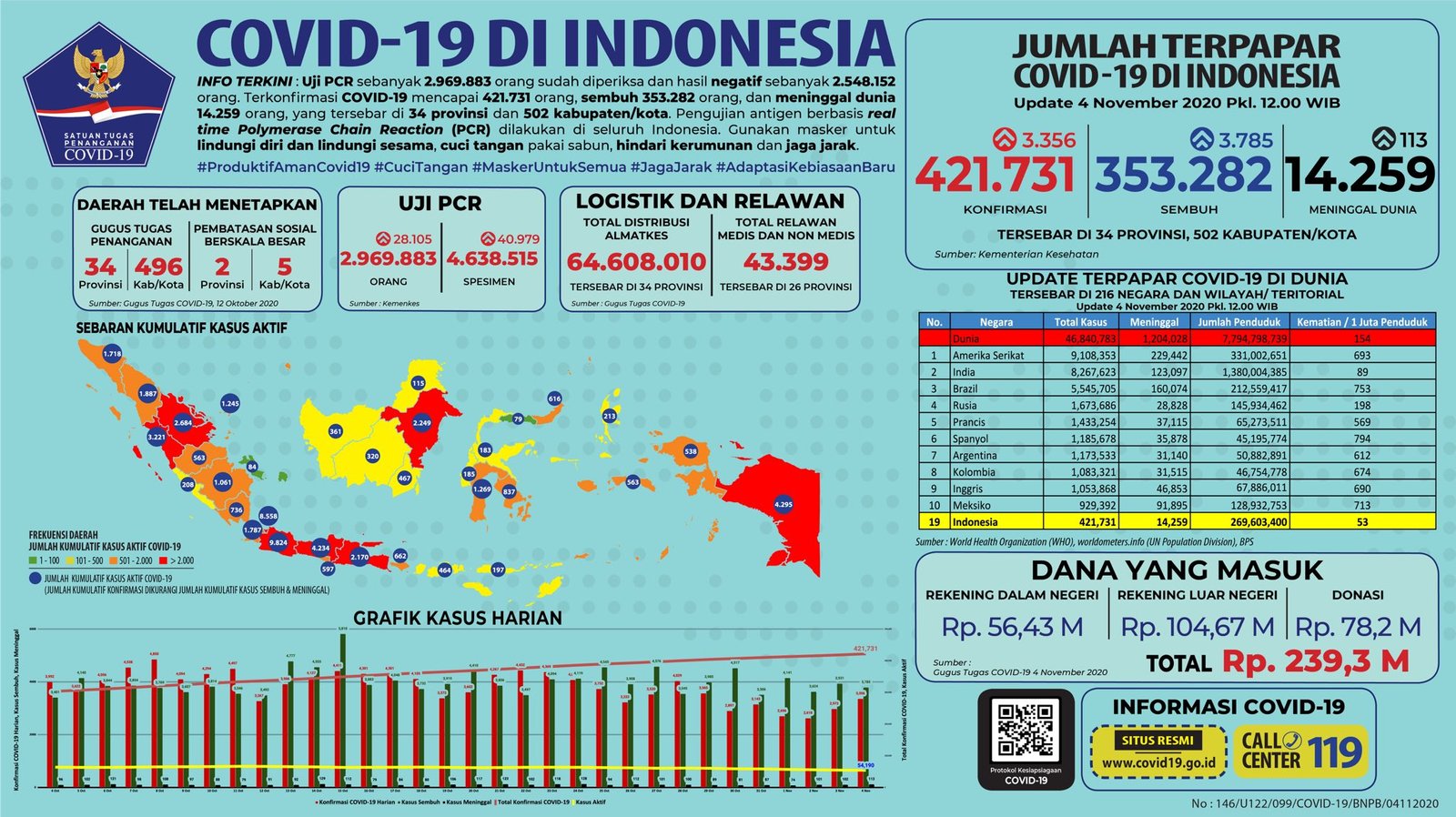 Update 4 November 2020 Korban Covid-19 di Indonesia: 421.731 Positif, 353.282 Sembuh, 14.259 Meninggal