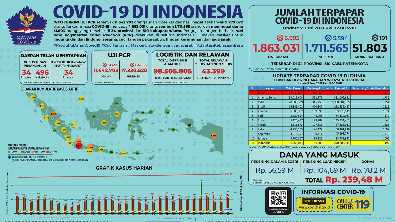 Update 7 Juni 2021 Korban Covid-19 di Indonesia: 1.863.031 Positif, 1.711.565 Sembuh, 51.803 Meninggal