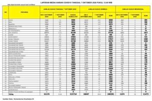 Data Pasien Corona (Covid-19) ini tercatat sejak Selasa, 6 Oktober 2020 pukul 12.00 WIB hingga hari ini, Rabu, 7 Oktober 2020 pukul 12.00 WIB.