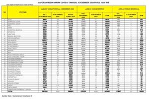 Data Pasien Corona (Covid-19) ini tercatat sejak Senin, 7 Desember 2020 pukul 12.00 WIB hingga hari ini, Selasa, 8 Desember 2020 pukul 12.00 WIB.