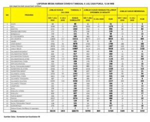 Data pasien Corona (Covid-19) ini tercatat sejak Selasa, 7 Juli 2020 pukul 12.00 WIB hingga hari ini, Rabu, 8 Juli 2020 pukul 12.00 WIB.