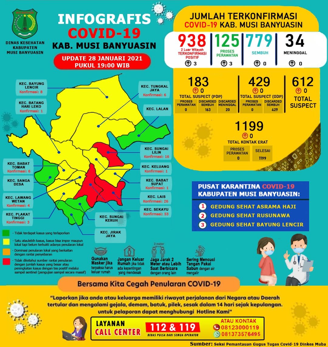 “Ada penambahan 3 kasus positif per 28 Januari 2021,” ungkap Jubir Gugus Tugas Penanganan COVID-19 Muba, Seftiani Peratita SS MKes.
