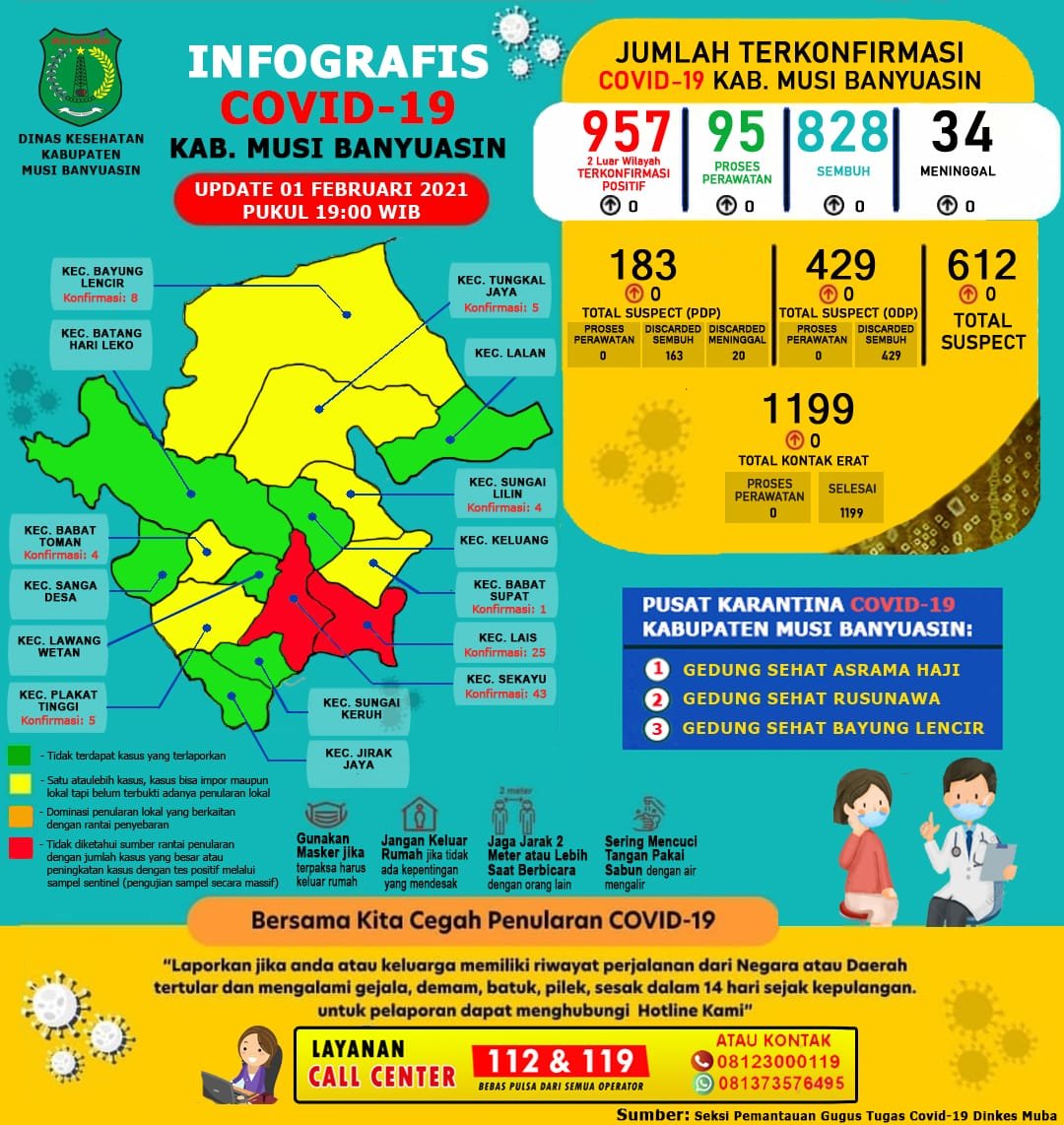“Tidak ada penambahan kasus positif per 1 Februari 2021,” ungkap Jubir Gugus Tugas Penanganan COVID-19 Muba, dr Povi Pada Indarta SP P.