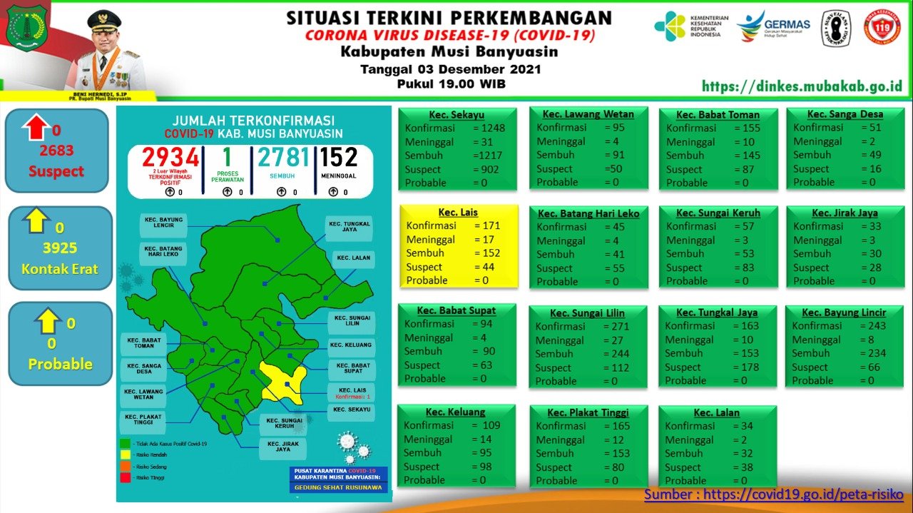 “Nihil penambahan kasus per 3 Desember 2021,” ungkap Jubir Gugus Tugas Penanganan COVID-19 Muba, Herryandi Sinulingga AP.