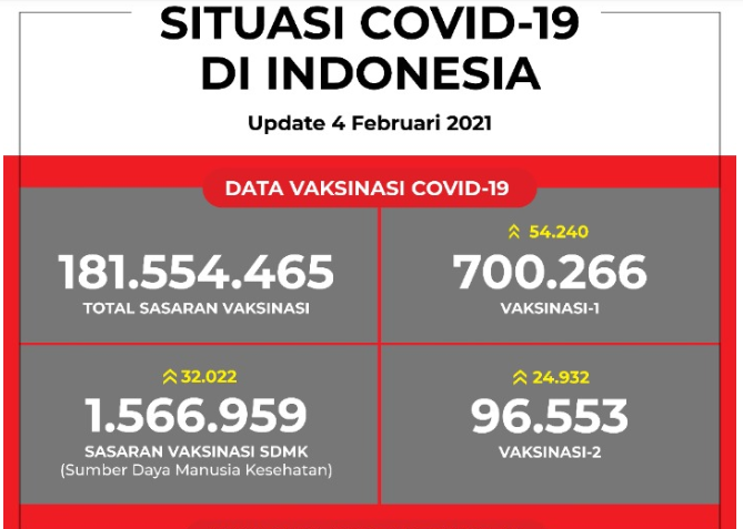 Update Data Vaksinasi Covid-19 Per 4 Februari 2021