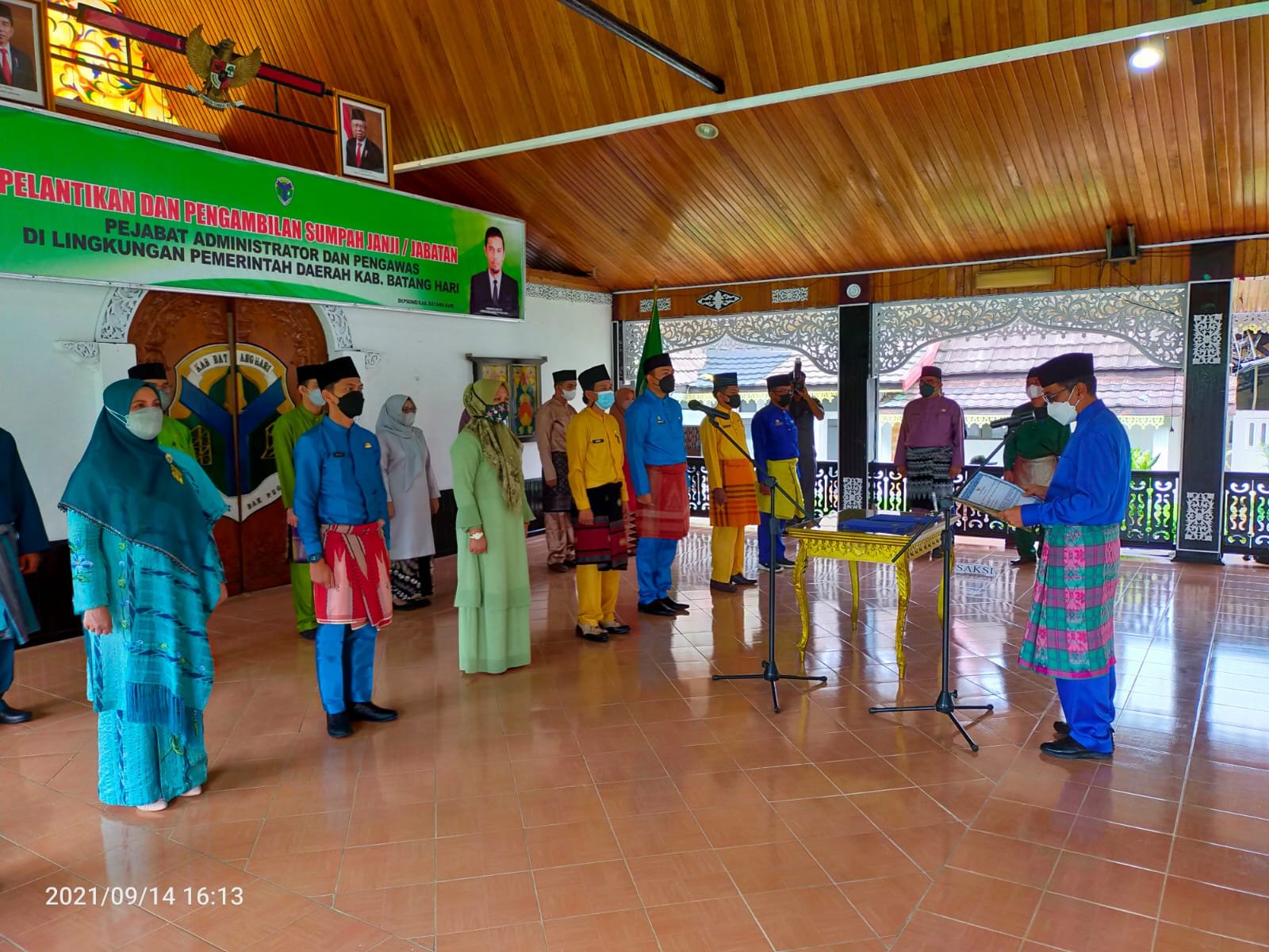 Pelantikan dan pengambilan sumpah terhadap 16 pejabat dihadiri Sekretaris Daerah Kabupaten Batanghari M. Azan, para kepala Organisasi Perangkat Daerah (OPD), dan camat se-Kabupaten Batanghari.