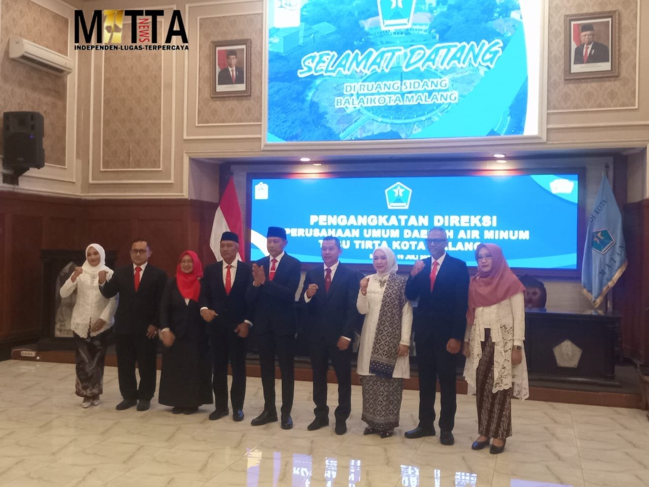 MATTANEWS.CO, KOTA MALANG – Pemerintah Kota Malang secara resmi telah melantik Jajaran Direksi Perumda Tugu Tirta, Direktur Utama dijabat Priyo Sudibyo, Direktur Tehnik dijabat Fauzan Indrawan dan Direktur Administrasi dan Keuangan dijabat Wahjoe Darmawan. Ketiga Direksi tersebut secara resmi dilantik Pj Wali Kota Malang, Wahyu Hidayat, di Ruang Sidang Balai Kota Malang, Sabtu (20/7/2024).