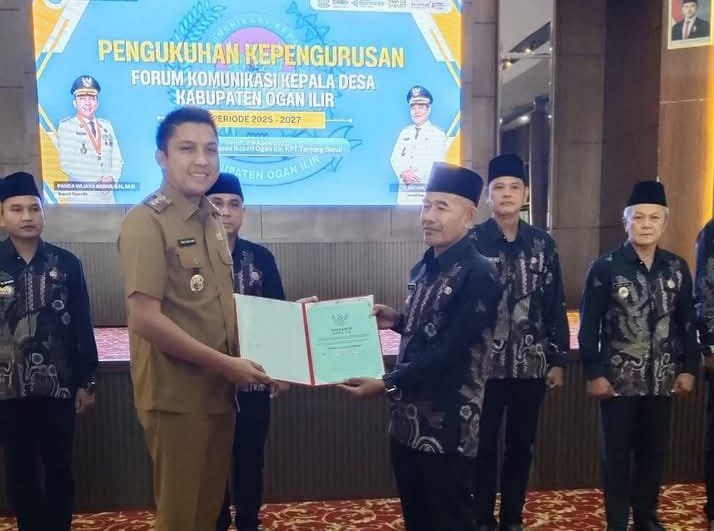 MATTANEWS.CO, OGAN ILIR – Bupati Ogan Ilir Panca Wijaya Akbar melantik dan mengukuhkan kepengurusan Forum Komunikasi Kepala Desa (FKKD) periode 2025-2027 di Pendopoan rumah dinas Bupati Ogan Ilir, Tanjung Senai, Senin (28/04/2024).