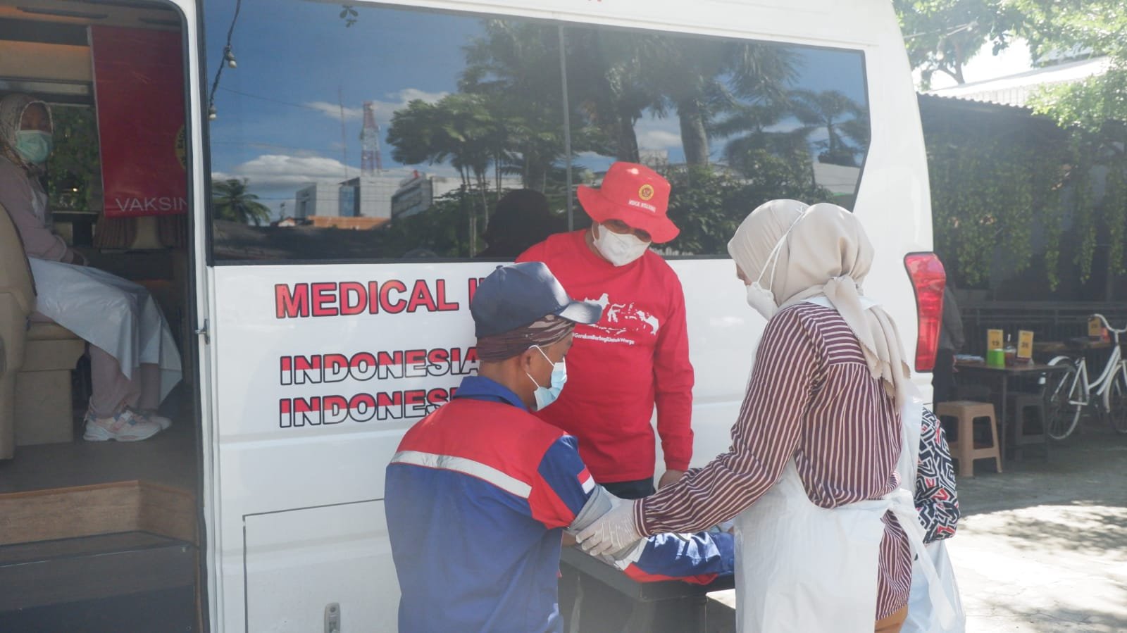 lakukan vaksinasi cegah Covid 19 dan varian baru virus mematikan omicron, Badan Intelijen Negara Daerah Sumatera Selatan, mendapat antusias besar dari masyarakat pengguna jalan dan pengunjung cafe di Kota Palembang, Sabtu (18/12/2021).
