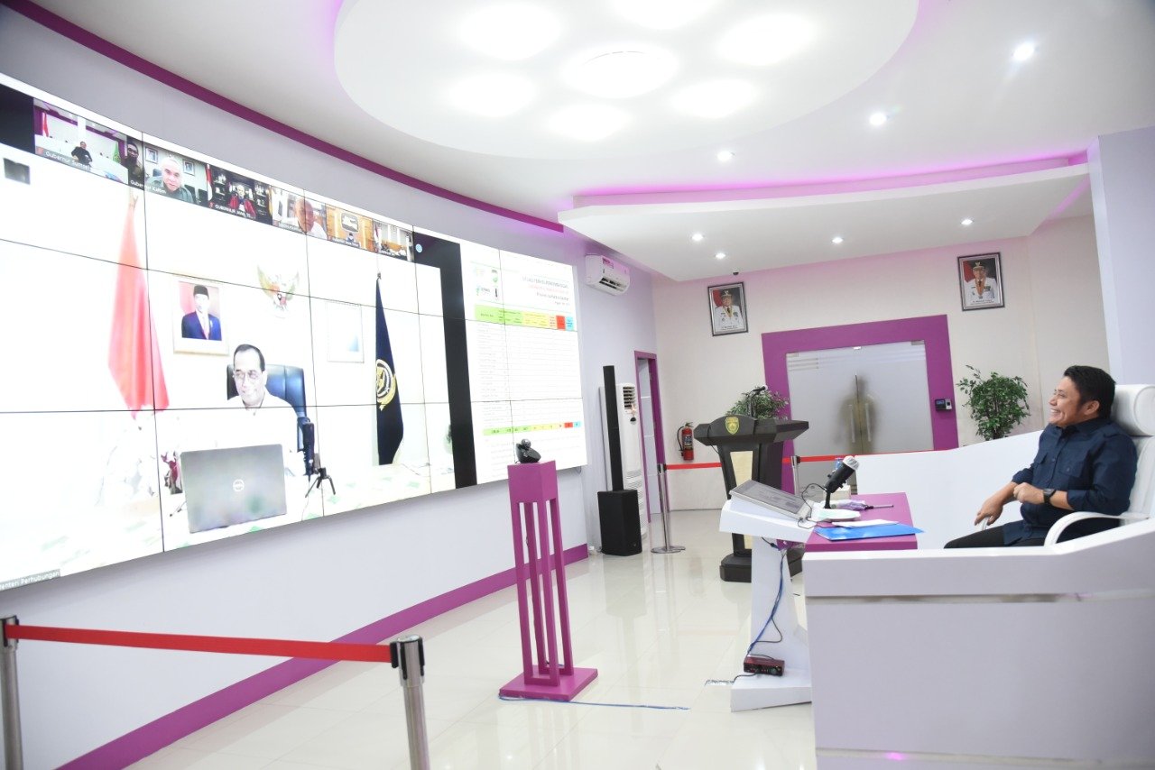 PALEMBANG, Mattanews.co – Menutup agenda kerjanya Senin (04/05/2020) sore, Gubernur Sumatera Selatan H. Herman Deru melakukan video conference bersama Menteri Perhubungan (Menhub) RI Budi Karya Sumadi di Command Centre Pemprov Sumsel. Vidcon dilakukan