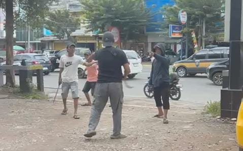 Beberapa saat kemudian, dua pria lain masing-masing berbaju putih dan berbaju hitam dengan topi merah datang melerai pertikaian tersebut. Situasi yang sempat memanas itu akhirnya mereda.