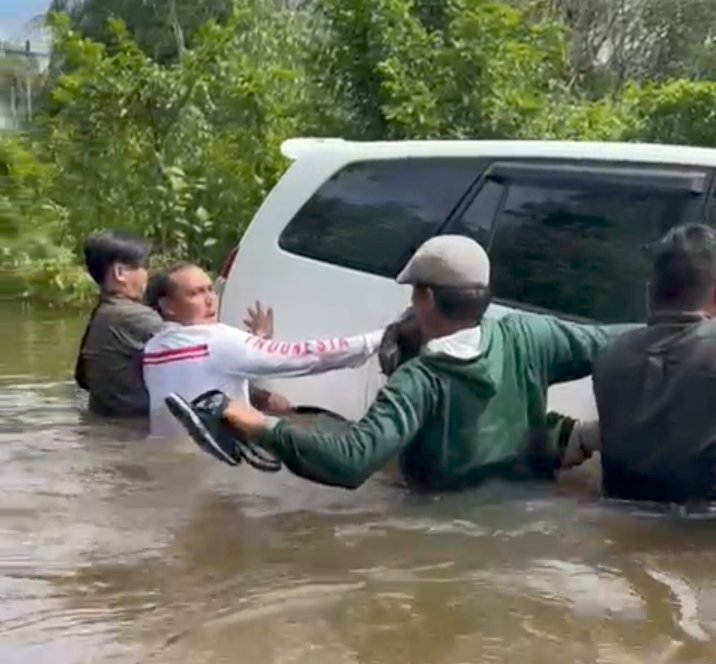 Dalam video tersebut Wabup Wahyudi Hidayat Kapuas Hulu menggunakan kaos lengan panjang putih dan dengan sedikit garis merah turut serta mendorong mobil yang nyaris hanyut kena derasnya air yang merendam poros jalan nasional wilayah selatan Kabupaten Kapuas Hulu itu.