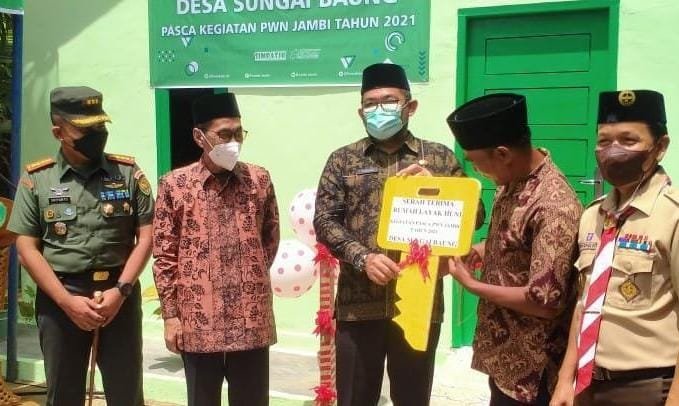 MATTANEWS.CO, BATANGHARI – Program pasca bakti fisik Perkemahan Wirakarya Nasional (PWN) Jambi 2021 yang dilaksanakan di Lima desa di Kecamatan Muara Bulian, Kabupaten Batanghari. Warga di Lima desa tersebut menerima rumah layak huni.