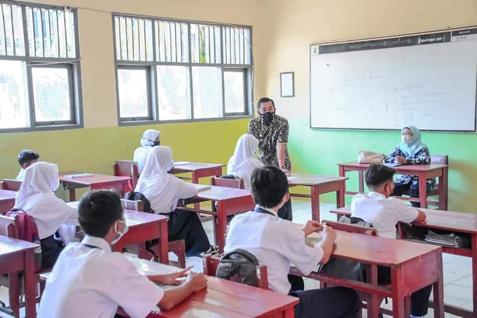 Dalam kunjungannya, Wabup Aep melakukan peninjauan jalannya proses belajar mengajar, melakukan pengecekan kelengkapan protokol kesehatan dan juga berinteraksi dengan sejumlah siswa yang hadir.