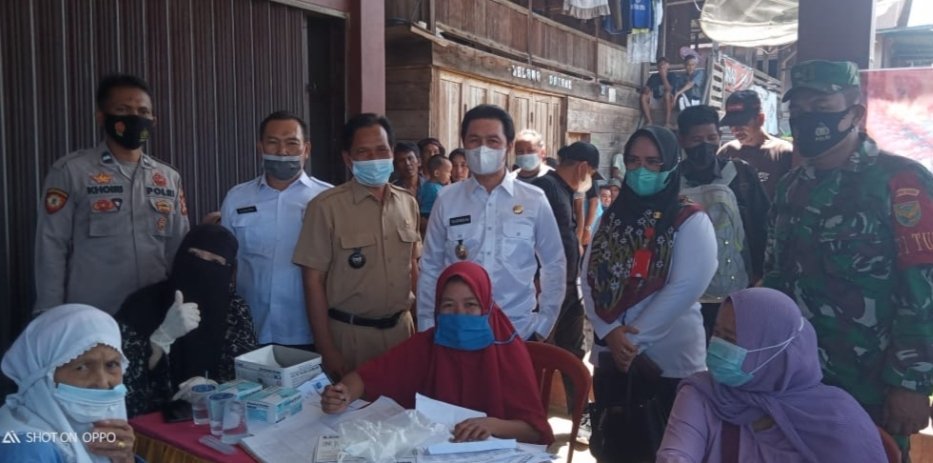 MATTANEWS.CO, EMPAT LAWANG – Wakil Bupati Empat Lawang Yulius Maulana bersama anggota Koramil 405-05/Pendopo, meninjau langsung pelaksanaan serbuan Vaksinasi di Desa Tanjung Eran Kecamatan Pendopo Kabupaten Empat Lawang, Rabu (17/11/2021).