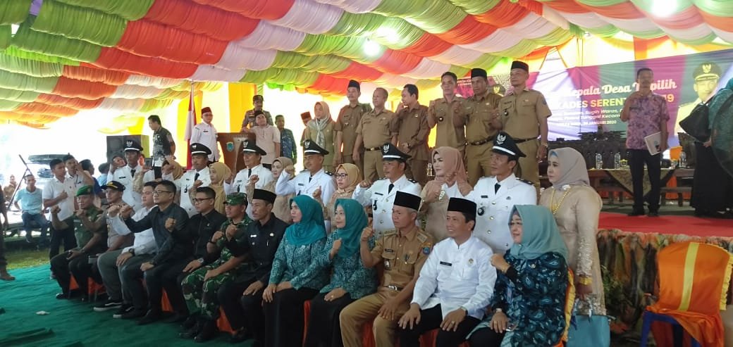 Antusias masyarakat yang hadir dari beberapa desa ikut meramaikan lajunya pelantikan. Nampak hadir juga tiga anggota DPRD (OKI)memberikan ucapan selamat kepada enam kades terpilih ini